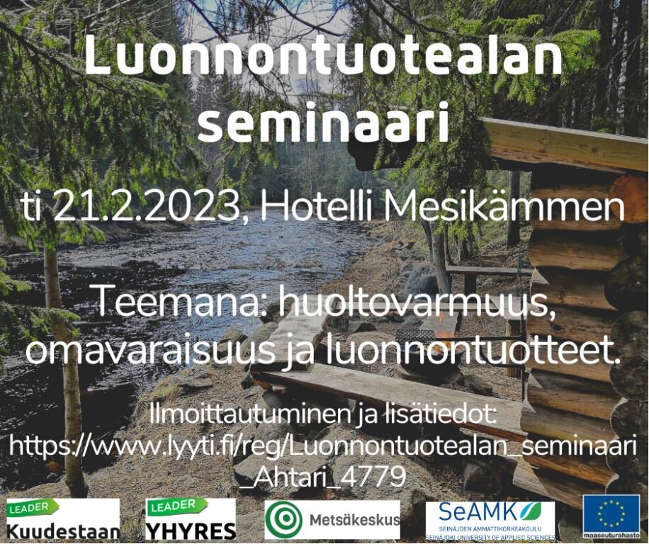 Suomalaisen puhtaan luonnon antimien, luonnontuotealan ja kotimaisen ruoantuotannon merkitys nousee uudella tavalla esiin muuttuvassa maailmantilanteessa. Ähtärissä hotelli Mesikämmenessä järjestettävässä seminaarissa kuullaan mm. maanpuolustuksen ja luonnontuotealan asiantuntijoita ja saadaan tietoa CAP27-kauden tukimuodoista.