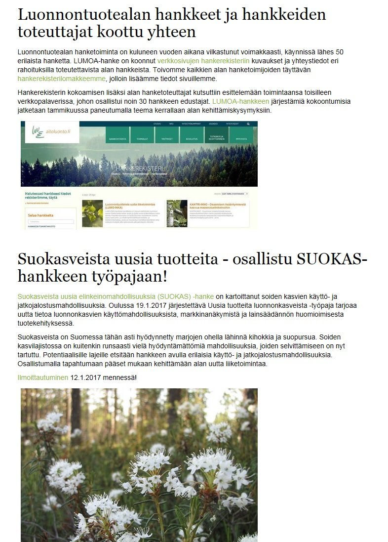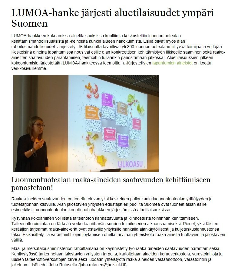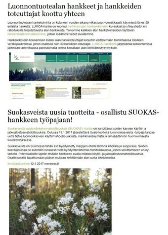 - Luonnontuotteet monipuolistuvissa arvoverkoissa (LUMOA) – luonnontuotealan koordinaatiohanke